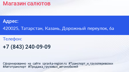 Магазин салютов по адресу 420025, Татарстан, Казань, Дорожный переулок, 6а в дальнейшем Организация, размещена в следующих категориях: