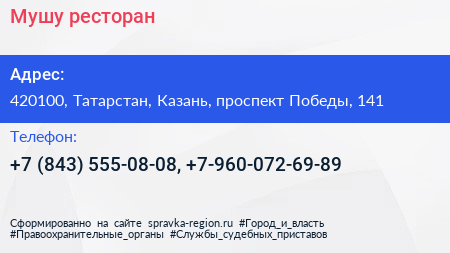 Мушу, ресторан по адресу 420100, Татарстан, Казань, проспект Победы, 141 в дальнейшем Организация, размещена в следующих категориях: