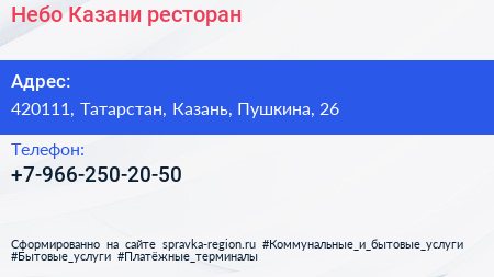 Небо Казани, ресторан по адресу 420111, Татарстан, Казань, Пушкина, 26 в дальнейшем Организация, размещена в следующих категориях: