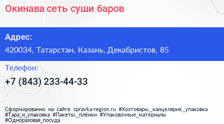 Окинава, сеть суши-баров по адресу 420034, Татарстан, Казань, Декабристов, 85 в дальнейшем Организация, размещена в следующих категориях:
