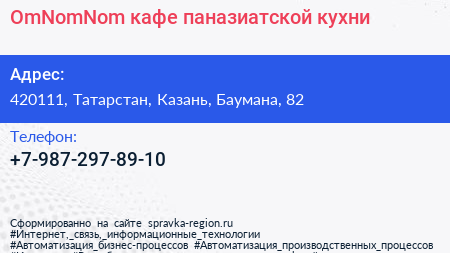 OmNomNom, кафе паназиатской кухни по адресу 420111, Татарстан, Казань, Баумана, 82 в дальнейшем Организация, размещена в следующих категориях: