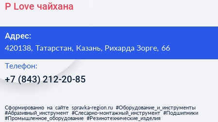 P.Love, чайхана по адресу 420138, Татарстан, Казань, Рихарда Зорге, 66 в дальнейшем Организация, размещена в следующих категориях: