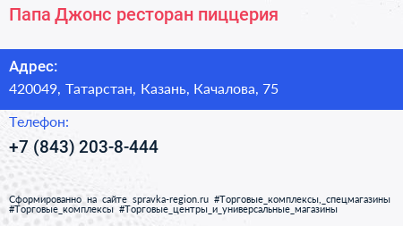 Папа Джонс, ресторан-пиццерия по адресу 420049, Татарстан, Казань, Качалова, 75 в дальнейшем Организация, размещена в следующих категориях: