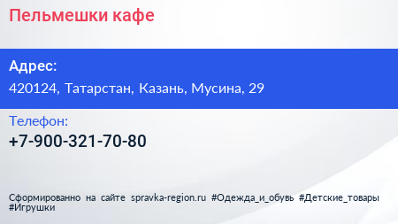 Пельмешки, кафе по адресу 420124, Татарстан, Казань, Мусина, 29 в дальнейшем Организация, размещена в следующих категориях: