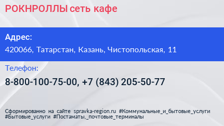 РОКНРОЛЛЫ, сеть кафе по адресу 420066, Татарстан, Казань, Чистопольская, 11 в дальнейшем Организация, размещена в следующих категориях: