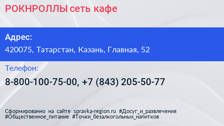 РОКНРОЛЛЫ, сеть кафе по адресу 420075, Татарстан, Казань, Главная, 52 в дальнейшем Организация, размещена в следующих категориях: