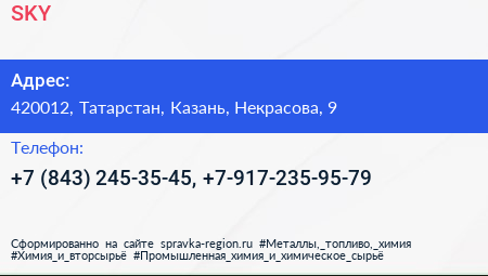 SKY по адресу 420012, Татарстан, Казань, Некрасова, 9 в дальнейшем Организация, размещена в следующих категориях:
