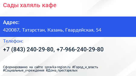Сады, халяль-кафе по адресу 420087, Татарстан, Казань, Гвардейская, 54 в дальнейшем Организация, размещена в следующих категориях: