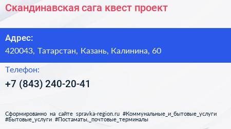 Скандинавская сага, квест-проект по адресу 420043, Татарстан, Казань, Калинина, 60 в дальнейшем Организация, размещена в следующих категориях: