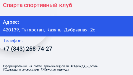Спарта, спортивный клуб по адресу 420139, Татарстан, Казань, Дубравная, 2е в дальнейшем Организация, размещена в следующих категориях: