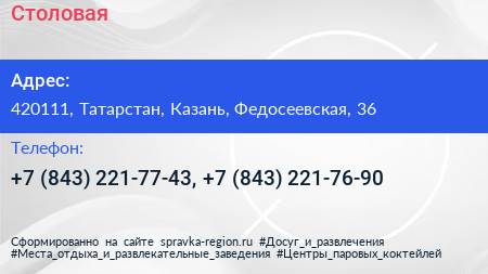 Столовая по адресу 420111, Татарстан, Казань, Федосеевская, 36 в дальнейшем Организация, размещена в следующих категориях: