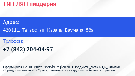 ТЯП-ЛЯП, пиццерия по адресу 420111, Татарстан, Казань, Баумана, 58а в дальнейшем Организация, размещена в следующих категориях: