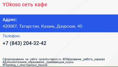 YOkoso, сеть кафе по адресу 420087, Татарстан, Казань, Даурская, 40 в дальнейшем Организация, размещена в следующих категориях: