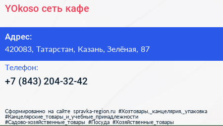 YOkoso, сеть кафе по адресу 420083, Татарстан, Казань, Зелёная, 87 в дальнейшем Организация, размещена в следующих категориях: