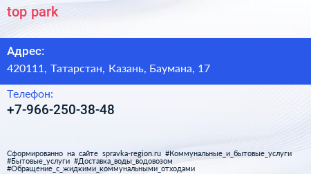 top-park по адресу 420111, Татарстан, Казань, Баумана, 17 в дальнейшем Организация, размещена в следующих категориях: