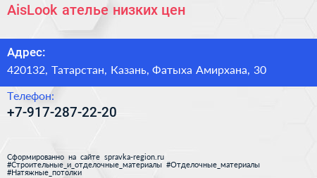 AisLook, ателье низких цен по адресу 420132, Татарстан, Казань, Фатыха Амирхана, 30 в дальнейшем Организация, размещена в следующих категориях: