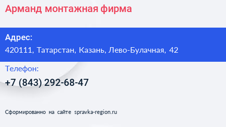 Арманд, монтажная фирма по адресу 420111, Татарстан, Казань, Лево-Булачная, 42 в дальнейшем Организация, размещена в следующих категориях: