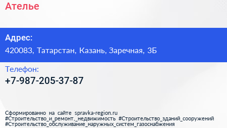 Ателье по адресу 420083, Татарстан, Казань, Заречная, 3Б в дальнейшем Организация, размещена в следующих категориях: