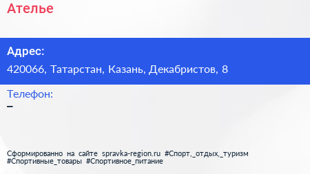 Ателье по адресу 420066, Татарстан, Казань, Декабристов, 8 в дальнейшем Организация, размещена в следующих категориях: