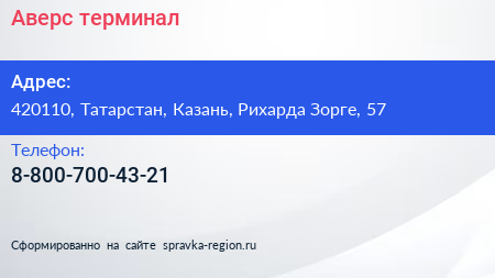 Аверс, терминал по адресу 420110, Татарстан, Казань, Рихарда Зорге, 57 в дальнейшем Организация, размещена в следующих категориях: