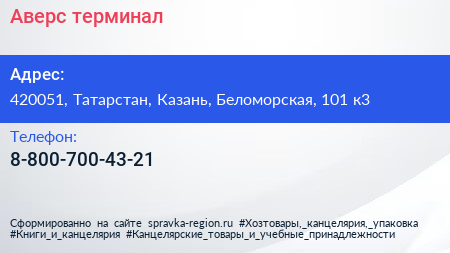 Аверс, терминал по адресу 420051, Татарстан, Казань, Беломорская, 101 к3 в дальнейшем Организация, размещена в следующих категориях: