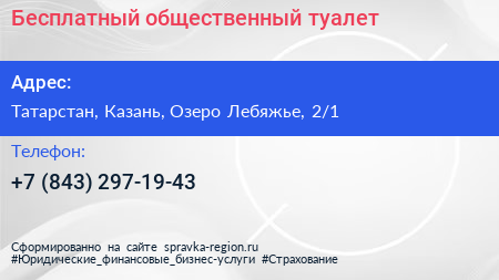 Бесплатный общественный туалет по адресу Татарстан, Казань, Озеро Лебяжье, 2/1 в дальнейшем Организация, размещена в следующих категориях: