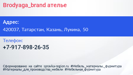 Brodyaga_brand, ателье по адресу 420037, Татарстан, Казань, Лукина, 50 в дальнейшем Организация, размещена в следующих категориях: