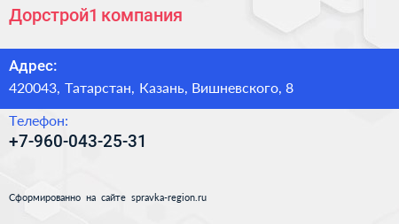 Дорстрой1, компания по адресу 420043, Татарстан, Казань, Вишневского, 8 в дальнейшем Организация, размещена в следующих категориях: