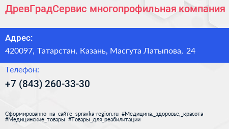 ДревГрадСервис, многопрофильная компания по адресу 420097, Татарстан, Казань, Масгута Латыпова, 24 в дальнейшем Организация, размещена в следующих категориях: