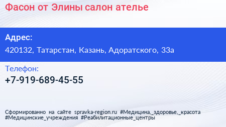 Фасон от Элины, салон-ателье по адресу 420132, Татарстан, Казань, Адоратского, 33а в дальнейшем Организация, размещена в следующих категориях:
