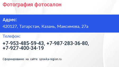 Фотография, фотосалон по адресу 420127, Татарстан, Казань, Максимова, 27а в дальнейшем Организация, размещена в следующих категориях: