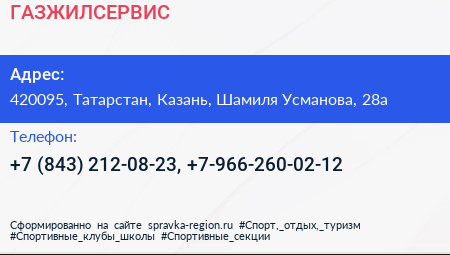 ГАЗЖИЛСЕРВИС по адресу 420095, Татарстан, Казань, Шамиля Усманова, 28а в дальнейшем Организация, размещена в следующих категориях: