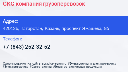 GKG, компания грузоперевозок по адресу 420126, Татарстан, Казань, проспект Ямашева, 85 в дальнейшем Организация, размещена в следующих категориях: