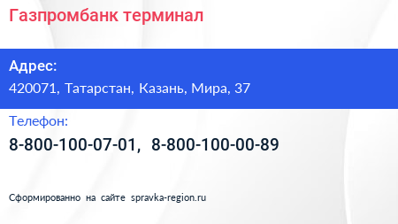 Газпромбанк, терминал по адресу 420071, Татарстан, Казань, Мира, 37 в дальнейшем Организация, размещена в следующих категориях: