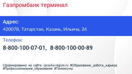Газпромбанк, терминал по адресу 420078, Татарстан, Казань, Ильича, 26 в дальнейшем Организация, размещена в следующих категориях: