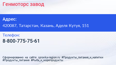 Генмоторс, завод по адресу 420087, Татарстан, Казань, Аделя Кутуя, 151 в дальнейшем Организация, размещена в следующих категориях: