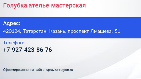 Голубка, ателье-мастерская по адресу 420124, Татарстан, Казань, проспект Ямашева, 51 в дальнейшем Организация, размещена в следующих категориях: