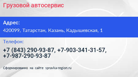 Грузовой автосервис по адресу 420099, Татарстан, Казань, Кадышевская, 1 в дальнейшем Организация, размещена в следующих категориях: