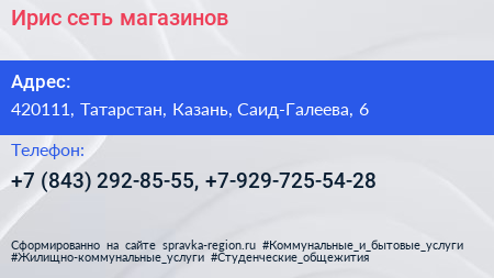 Ирис, сеть магазинов по адресу 420111, Татарстан, Казань, Саид-Галеева, 6 в дальнейшем Организация, размещена в следующих категориях: