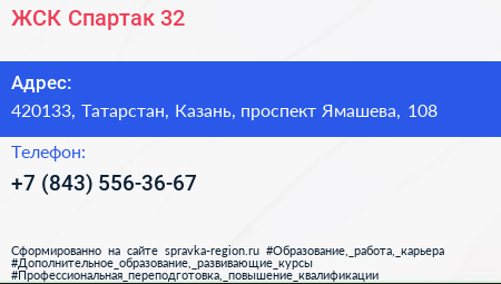 ЖСК Спартак-32 по адресу 420133, Татарстан, Казань, проспект Ямашева, 108 в дальнейшем Организация, размещена в следующих категориях: