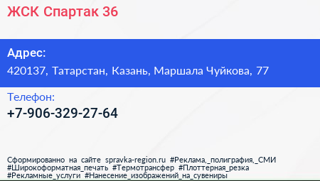 ЖСК Спартак-36 по адресу 420137, Татарстан, Казань, Маршала Чуйкова, 77 в дальнейшем Организация, размещена в следующих категориях: