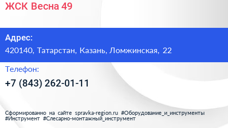 ЖСК Весна-49 по адресу 420140, Татарстан, Казань, Ломжинская, 22 в дальнейшем Организация, размещена в следующих категориях: