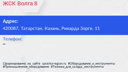 ЖСК Волга-8 по адресу 420087, Татарстан, Казань, Рихарда Зорге, 11 в дальнейшем Организация, размещена в следующих категориях: