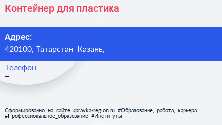 Контейнер для пластика по адресу 420100, Татарстан, Казань, в дальнейшем Организация, размещена в следующих категориях: