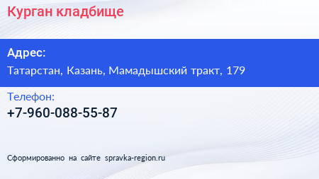 Курган, кладбище по адресу Татарстан, Казань, Мамадышский тракт, 179 в дальнейшем Организация, размещена в следующих категориях: