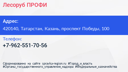 Лесоруб-ПРОФИ по адресу 420140, Татарстан, Казань, проспект Победы, 100 в дальнейшем Организация, размещена в следующих категориях: