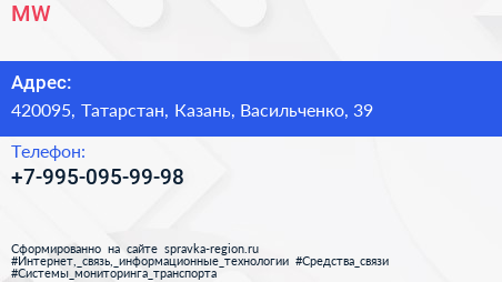 MW по адресу 420095, Татарстан, Казань, Васильченко, 39 в дальнейшем Организация, размещена в следующих категориях: