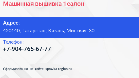 Машинная вышивка №1, салон по адресу 420140, Татарстан, Казань, Минская, 30 в дальнейшем Организация, размещена в следующих категориях:
