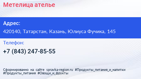 Метелица, ателье по адресу 420140, Татарстан, Казань, Юлиуса Фучика, 145 в дальнейшем Организация, размещена в следующих категориях:
