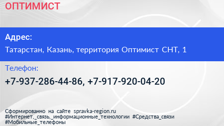 ОПТИМИСТ по адресу Татарстан, Казань, территория Оптимист СНТ, 1 в дальнейшем Организация, размещена в следующих категориях: